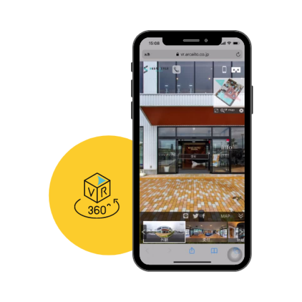 クリエイターズ百貨店の最大の強みはVR動画制作です。360度カメラを使えば店舗や施設にあたかも、そこいるかのような体験ができる動画です。学校や病院、不動産の内見用におすすめです!